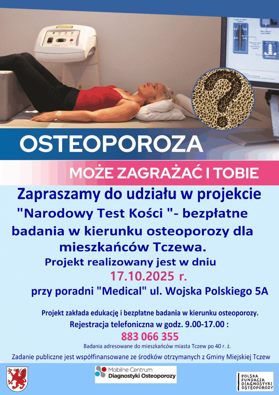 Projekt „Narodowy test kości” jest współfinansowany ze środków Gminy Miejskiej Tczew.