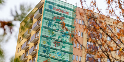 Artyści tworzą wielkoformatowe malowidło. Dzieło inspirowane jest motywami folkloru